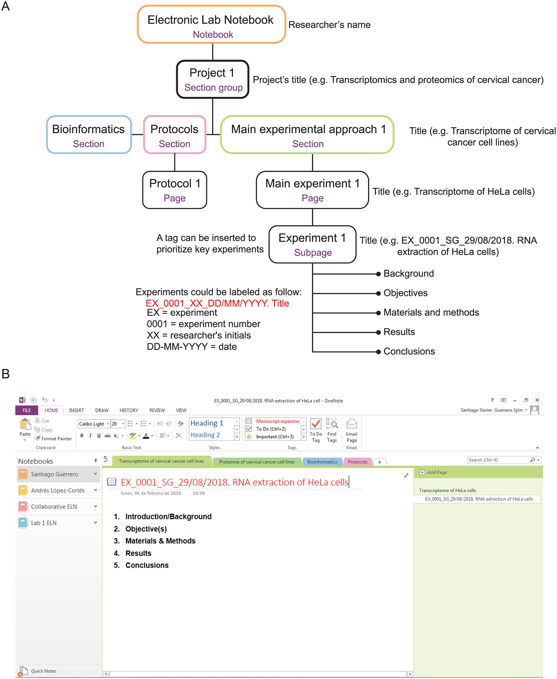 Guerrero S, López-Cortés A, García-Cárdenas JM, Saa P, Indacochea A, Armendáriz-Castillo I, et al. (2019) A quick guide for using Microsoft OneNote as an electronic laboratory notebook. PLoS Comput Biol 15(5): e1006918. https://doi.org/10.1371/journal.pcbi.1006918